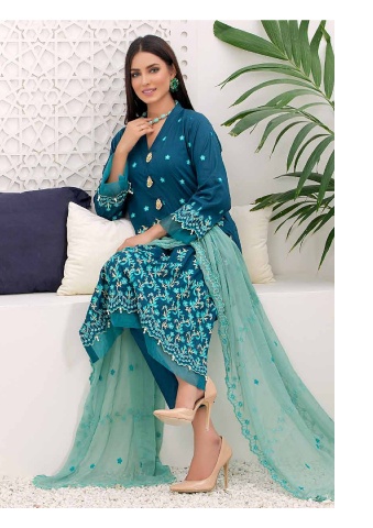 a multihued embroiedred shirt with chiffon dupatta and